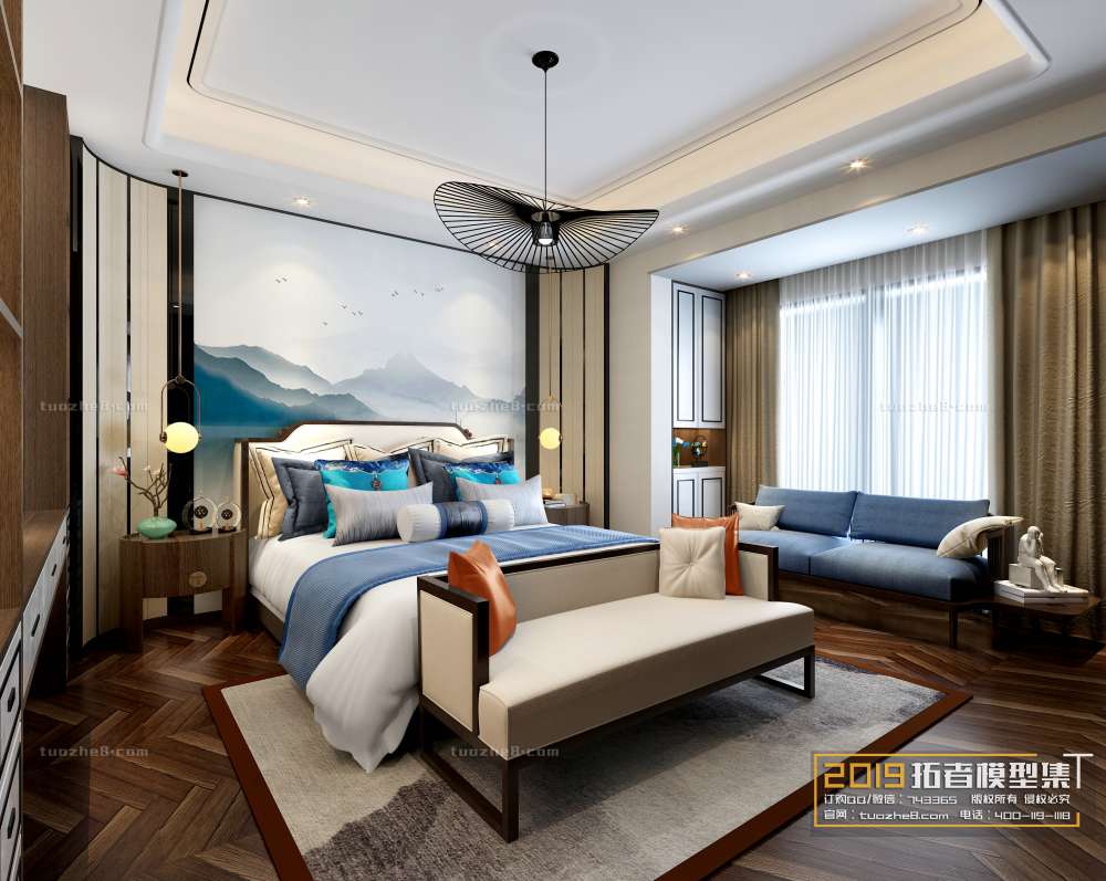This 3D scene showcases a bedroom designed in a Chinese style, featuring traditional furniture and decor elements. The intricate details and cultural influences create a unique and elegant space. Explore this scene for inspiration in interior design projects.