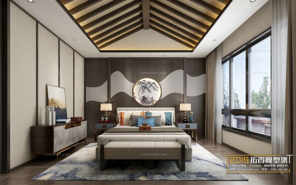 This 3D scene showcases a bedroom designed in a Chinese style, featuring traditional elements and intricate details. The design captures the essence of Chinese aesthetics and offers a blend of modern and traditional elements. Explore this scene to get inspired for your interior design projects.