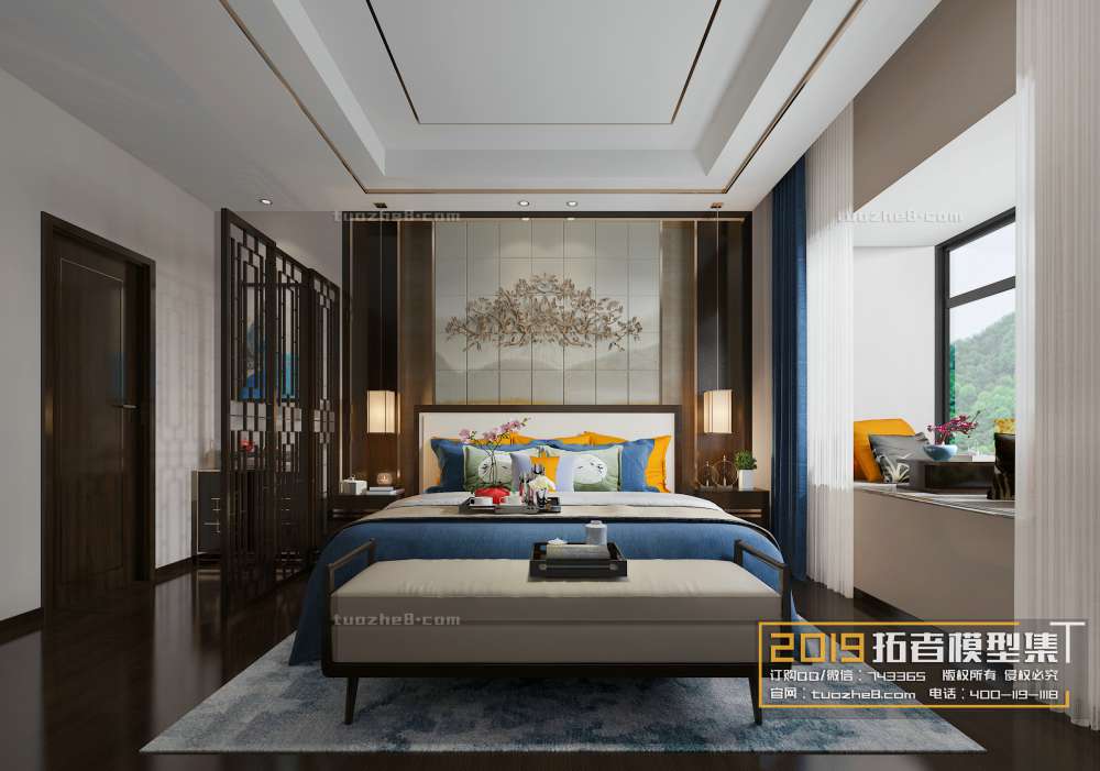This 3D scene showcases a beautifully designed bedroom in Chinese style. The room features traditional Chinese furniture and decor, creating an elegant and serene atmosphere. Perfect for those looking for inspiration in Asian interior design.