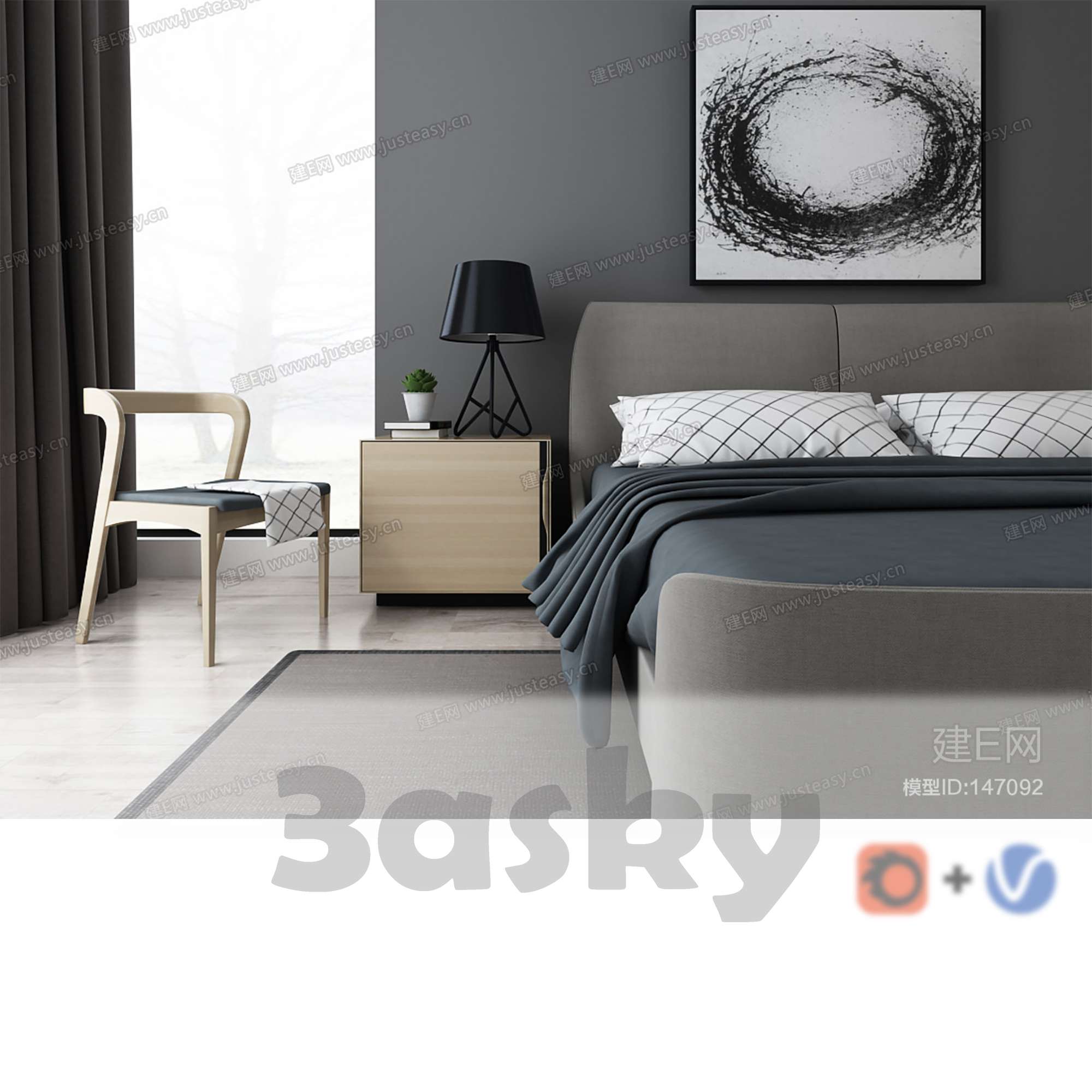 This 3D model showcases a bedroom furniture set created in 3DS MAX. The preview image provides a glimpse of the bed and other furniture items included in the design. Explore the intricate details and layout of the bedroom furniture in this high-quality 3D model.