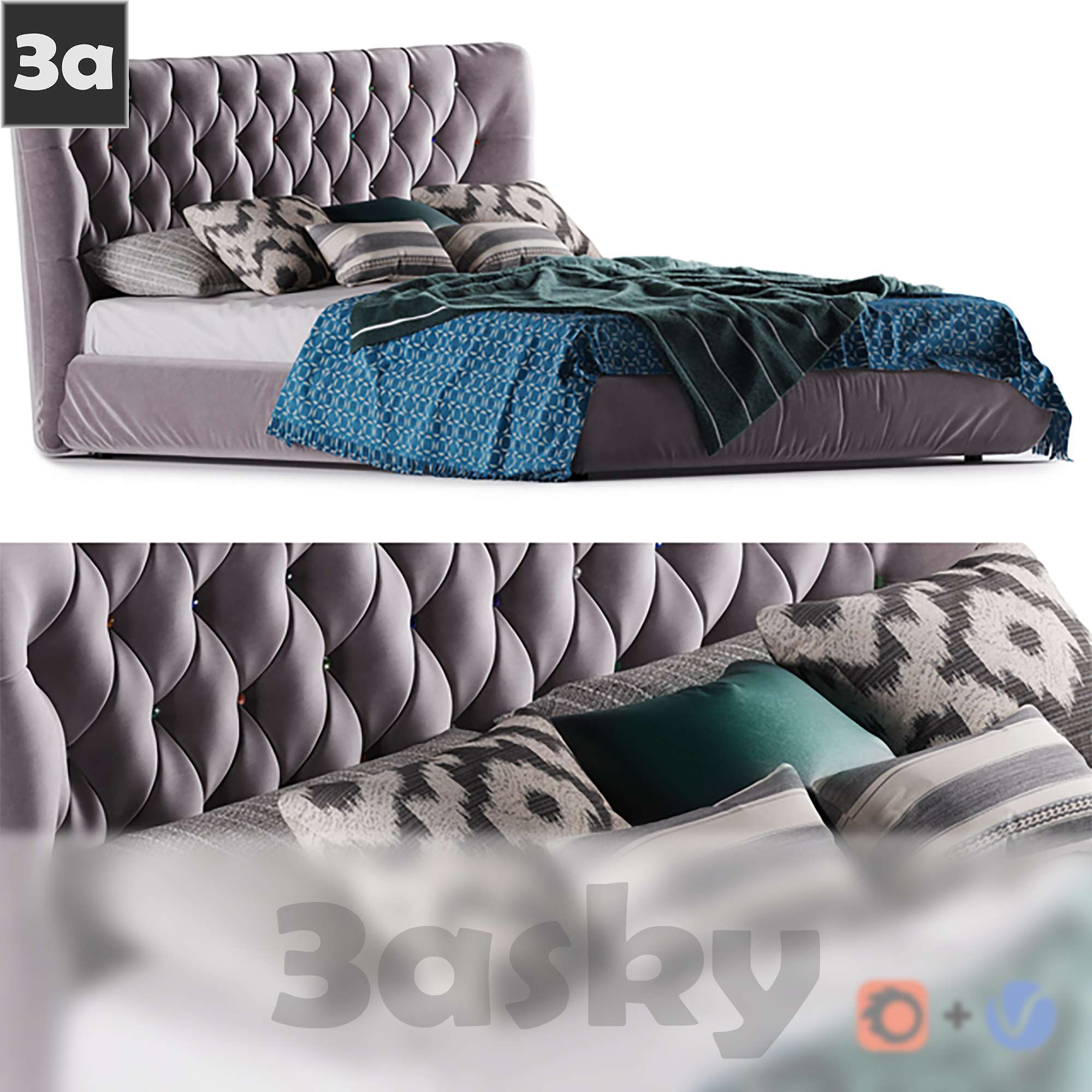 This 3D model showcases a modern bedroom furniture set created using 3DS MAX software. The design includes a stylish bed and other essential furniture pieces. Explore the intricate details and realistic textures of this furniture model for your interior design projects.