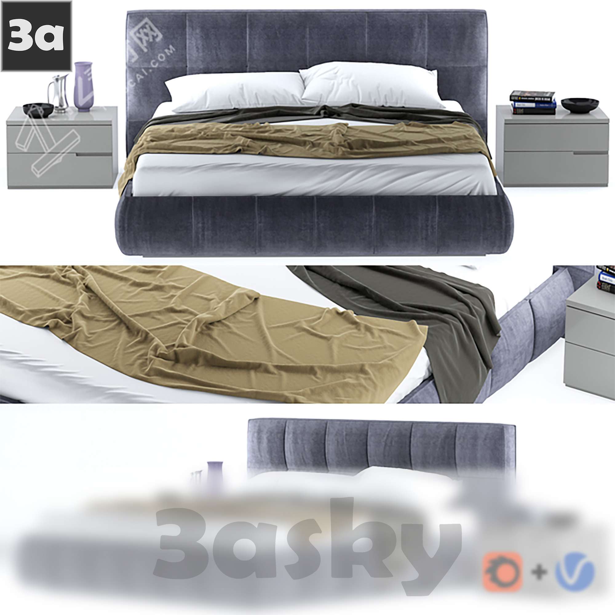 This 3DS MAX furniture file features a detailed model of a bed, suitable for interior design projects. The file is of high quality and can be used in various design applications.
