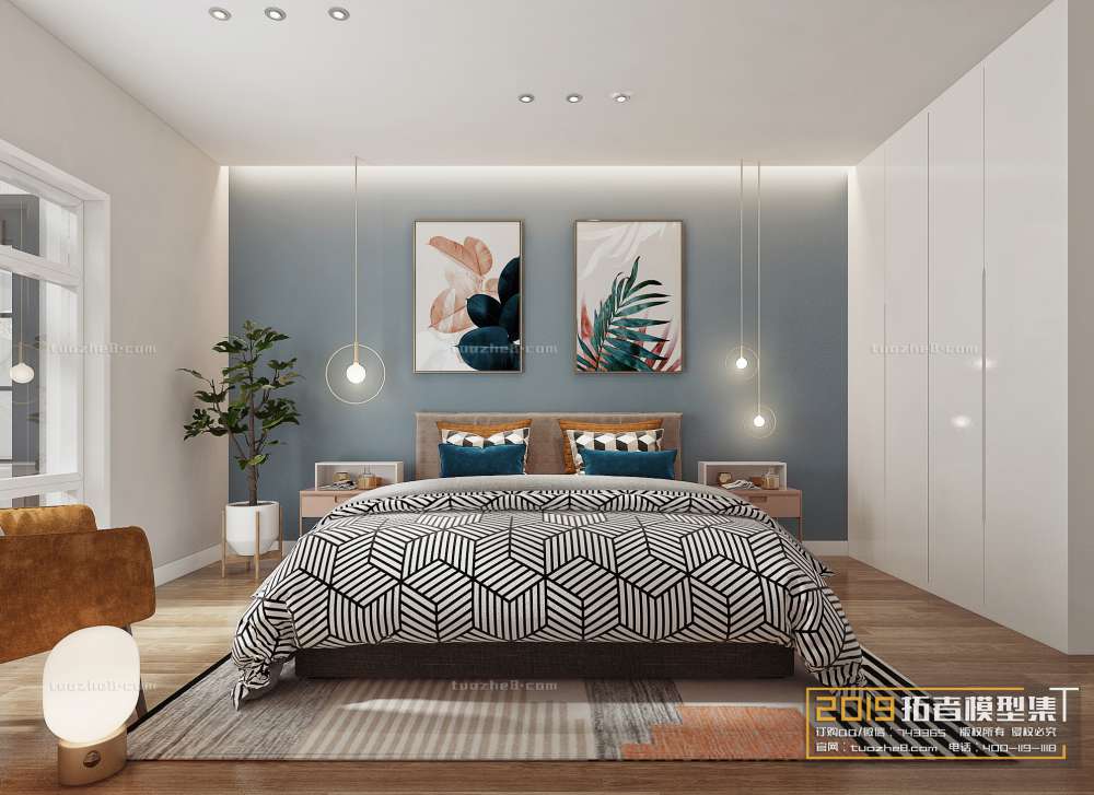 This 3D scene showcases a bedroom designed in Nordic style. The room features elegant furniture and a cozy ambiance. Explore the design elements and layout of Bedroom Nordic Style 018 in this preview image.