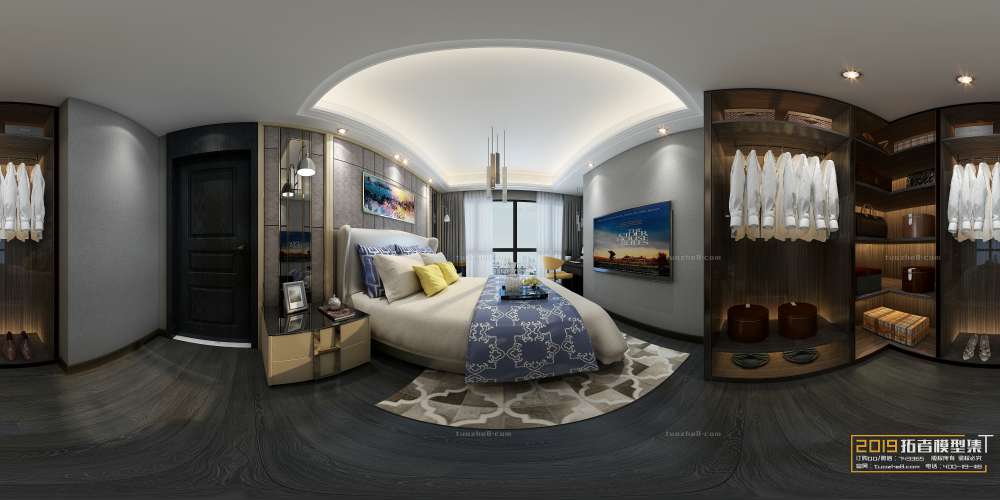 This 3D scene showcases a bedroom in other style 008, featuring a unique design and layout. Explore the interior details and furniture arrangement in this visually appealing bedroom setting.