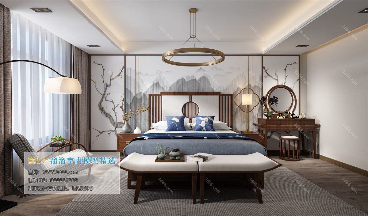 This 3D scene showcases a bedroom space designed in Chinese style. The room features traditional Chinese design elements, creating a serene and elegant ambiance. Explore the intricate details and cultural richness of Chinese interior design in this preview image.