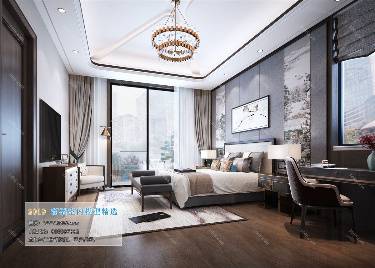 This 3D scene showcases a bedroom space designed in a Chinese style. The room features traditional Chinese decor and furniture, creating a serene and elegant ambiance. Perfect for those looking for inspiration in interior design with a cultural touch.
