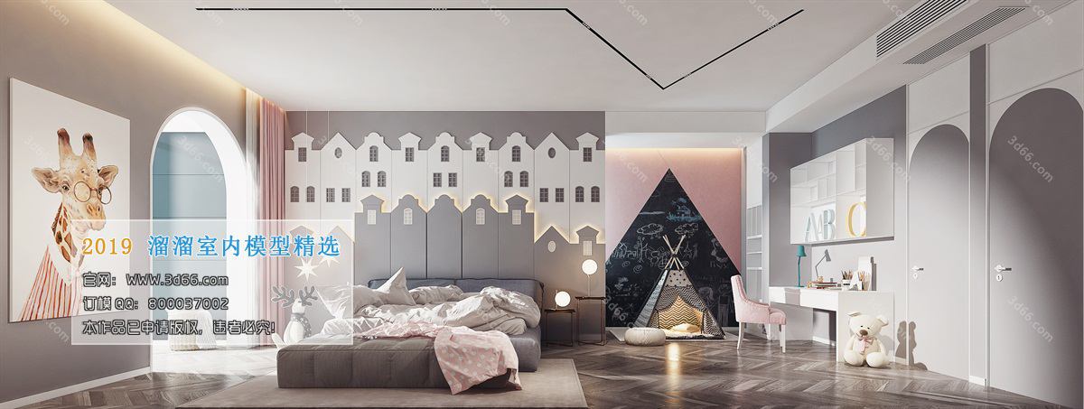 This 3D scene showcases a bedroom space designed in a Nordic style. The room features minimalist furniture, clean lines, and a cozy atmosphere. Perfect for those who appreciate simple yet elegant interior design. Explore this preview to get a glimpse of the overall layout and design details.