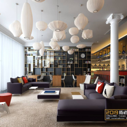 This 3D scene features a Beverage Shop interior design concept with a modern and stylish aesthetic. The space is designed to blend functionality with visual appeal, creating a welcoming and trendy environment. Explore the details of the layout, furniture, and decor elements that make this scene stand out.