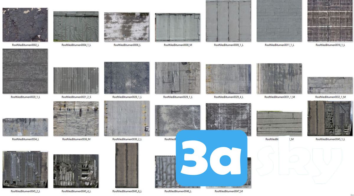This image showcases a detailed bitumen roof texture, ideal for use in architectural visualization, 3D modeling, and design projects. The texture features a realistic representation of bitumen, a common roofing material known for its durability and weather resistance. Use this texture to enhance the realism of your digital creations and bring authenticity to your designs.