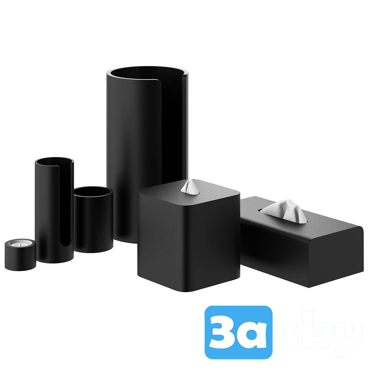 This 3D model showcases the Black Stone Bathroom Accessories designed by Decor Walther. The set includes various elegant accessories that can elevate the design of your bathroom and WC. Add a touch of sophistication and style to your space with these black stone accessories.