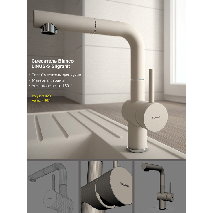 This 3D model features the Blanco Linus S Silgranit Kitchen Faucet, a modern and stylish addition to any kitchen. The high-quality rendering showcases the intricate details and functionality of this kitchen faucet. Explore the design and features of the Blanco Linus S Silgranit Kitchen Faucet in this detailed 3D model.