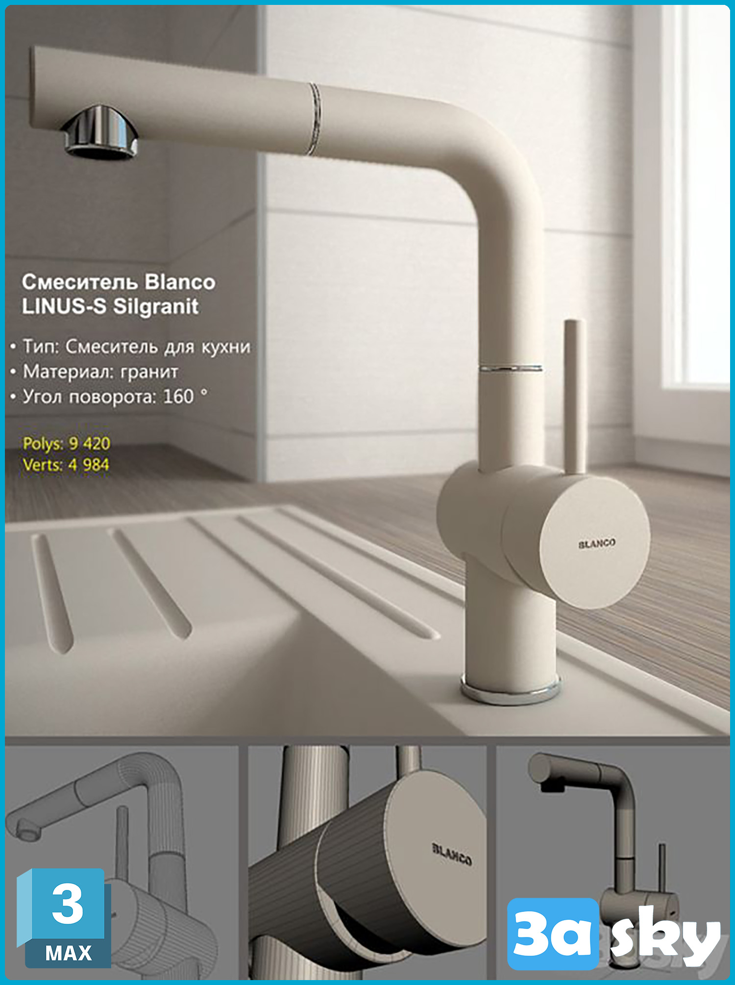 This 3D model showcases the Blanco Linus S Silgranit, a stylish and modern kitchen sink design. The high-resolution image provides a detailed preview of the Blanco Linus S Silgranit, highlighting its sleek and elegant features. Perfect for interior design projects or architectural visualizations.