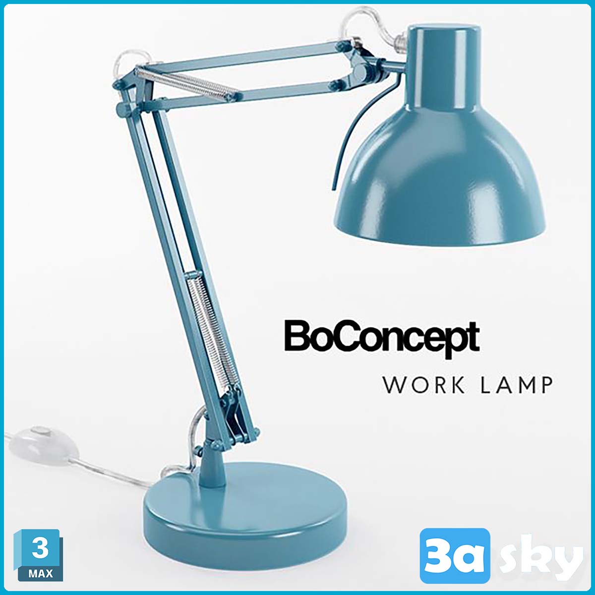 This 3DS MAX file features a detailed 3D model of the BoConcept Work Lamp, a sleek and modern lighting design suitable for contemporary interiors. The file includes lighting settings and textures for realistic rendering. Perfect for interior designers and architects looking to enhance their projects with high-quality lighting fixtures.