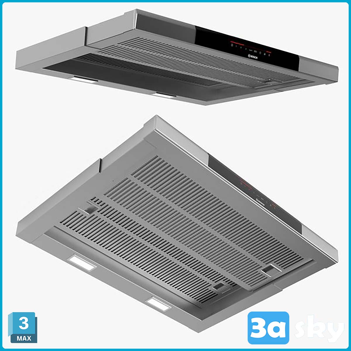 This 3D model features the Bosch 60cm Telescopic Cooker Hood, a sleek and modern kitchen appliance. The model is designed with attention to detail, making it ideal for use in interior design projects. The Bosch cooker hood adds a touch of elegance and functionality to any kitchen space. Download this 3D model to enhance your kitchen design visualization.