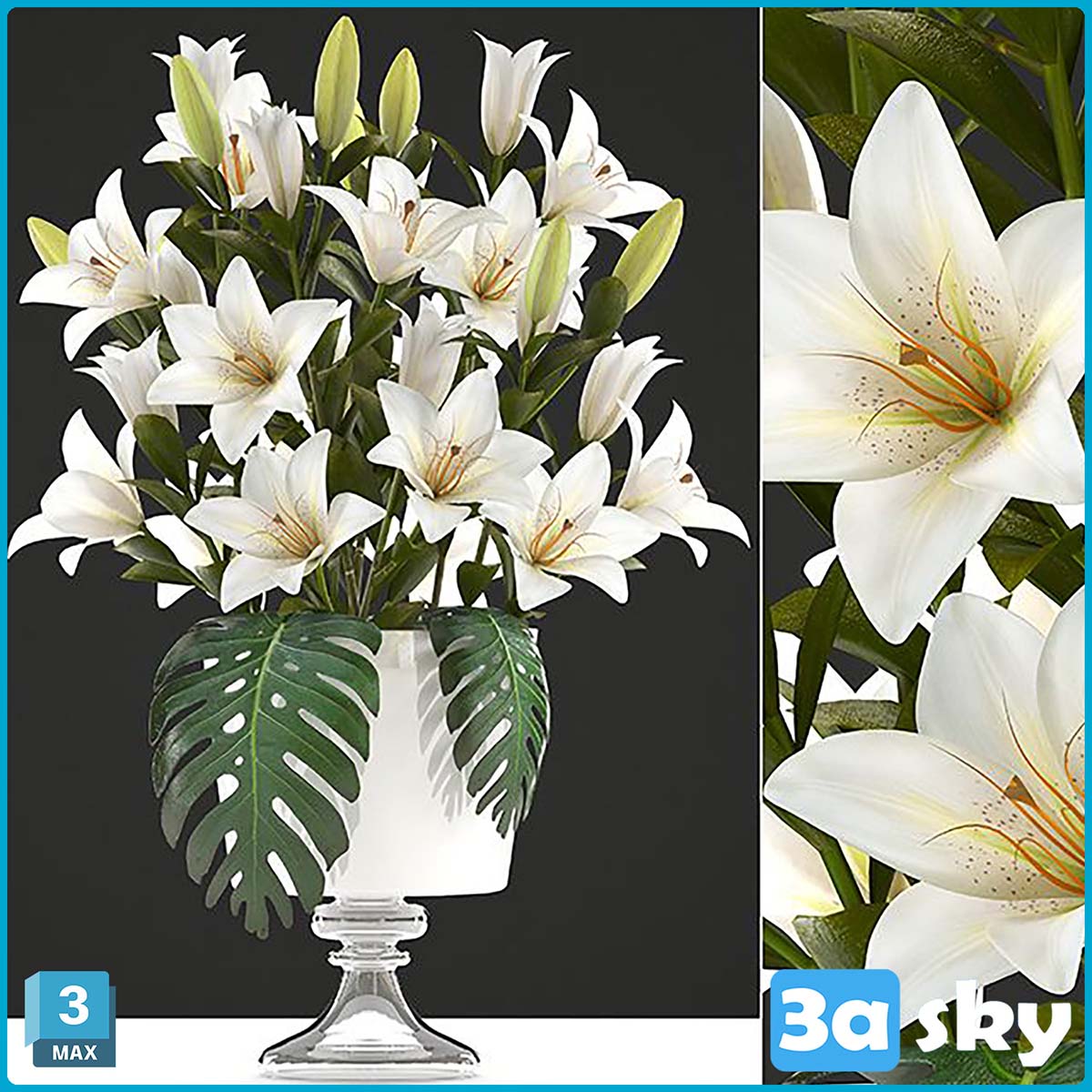 This 3DS MAX file features a stunning bouquet of white flowers, ideal for adding a touch of elegance to your architectural visualization or interior design projects. The file is high-quality and ready to be incorporated into your creative work.