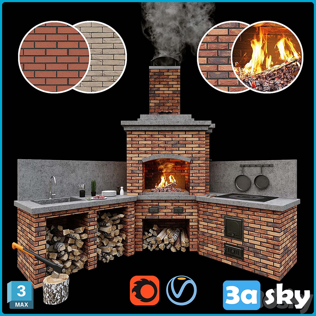 This 3D model showcases a beautifully crafted brick BBQ oven decoration, ideal for adding a touch of elegance to your interior design projects. The intricate details and realistic textures make it a standout piece for architectural visualization purposes. Enhance your designs with this stunning brick BBQ oven decoration.