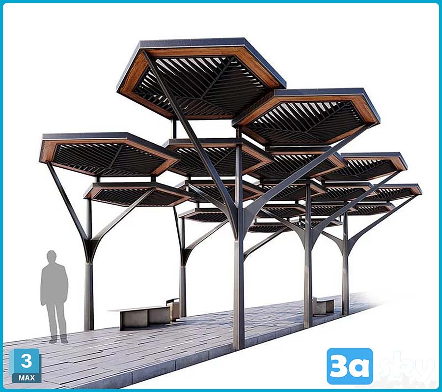 This 3D model showcases a modern canopy design suitable for architectural projects. Created using 3DS MAX software, this model offers intricate details and realistic textures. Ideal for architects and designers looking to enhance their visualizations with a contemporary canopy structure.