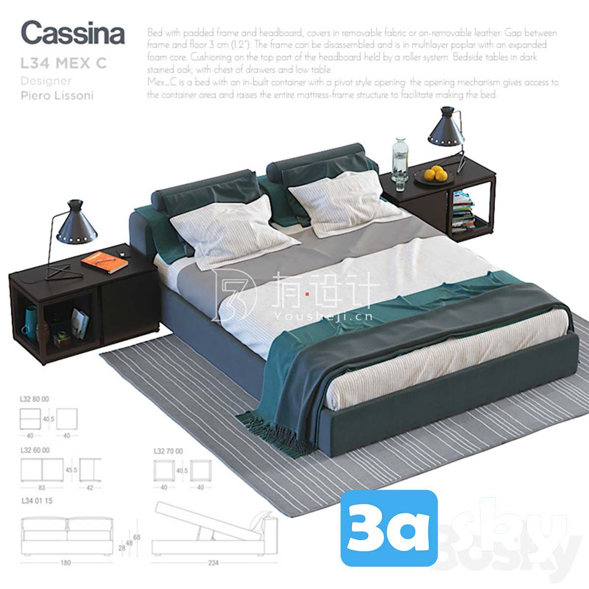 This 3D model showcases the Cassina L34 Mex C furniture design. It is a high-quality and detailed representation suitable for interior design projects. The model is created in 3DS MAX format and offers a realistic preview of the furniture piece. Perfect for architects, interior designers, and 3D enthusiasts looking to enhance their visualizations with premium furniture models.