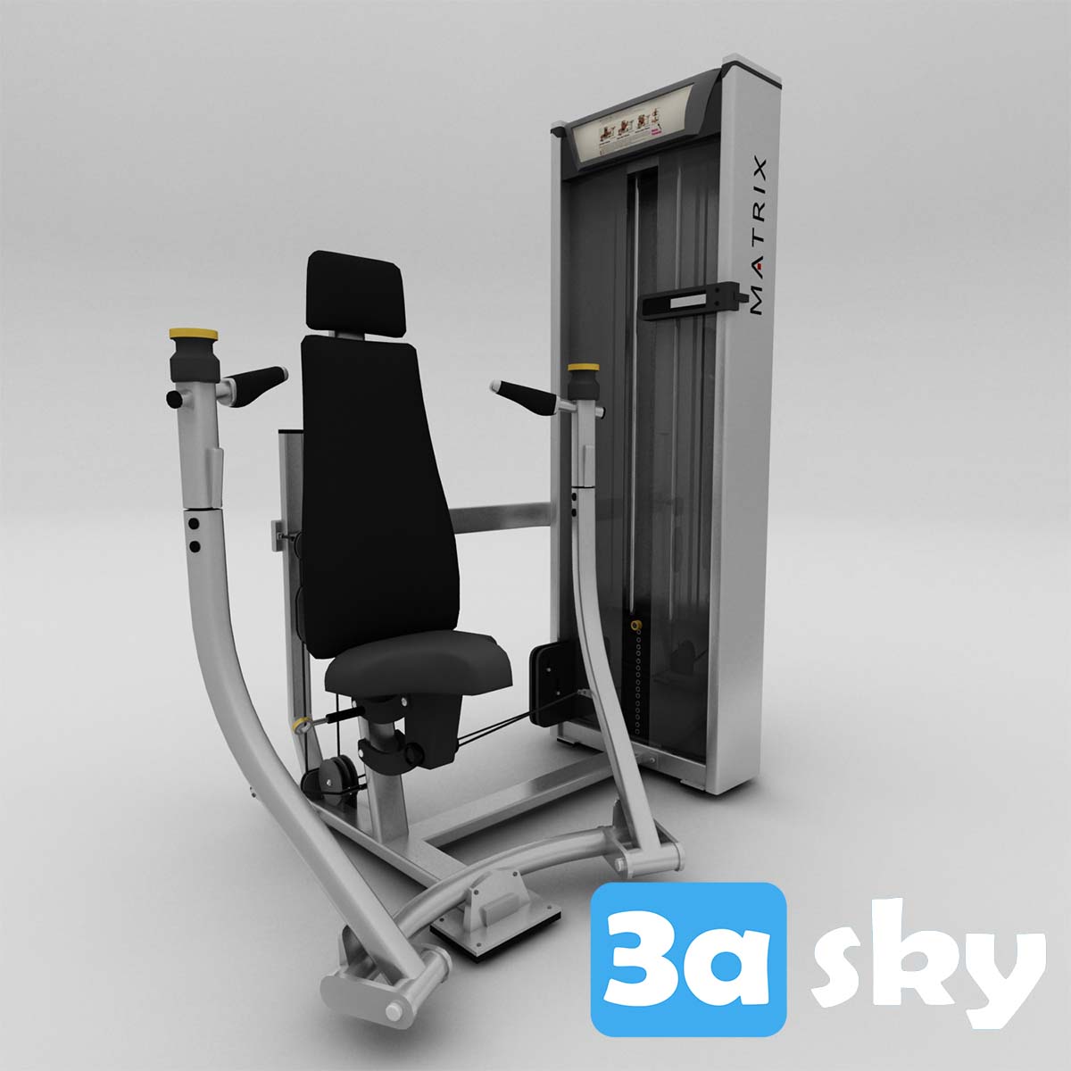 This 3D model showcases a Chest Press Machine, ideal for gym and fitness-related projects. The file is created in 3DS MAX and offers high-quality details for interior decoration purposes. Enhance your design projects with this realistic and accurate representation of a gym equipment staple.