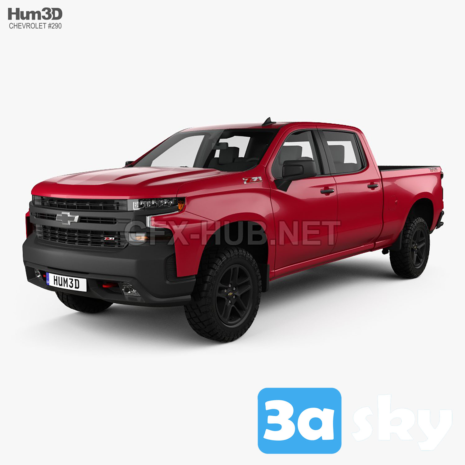 This 3D model features the Chevrolet Silverado Crew Cab 1500 LT Z71 Trail Boss from 2018. It is designed in 3DS MAX/DECORATION format, perfect for interior design and decoration projects. Download this high-quality 3D model to enhance your design work.