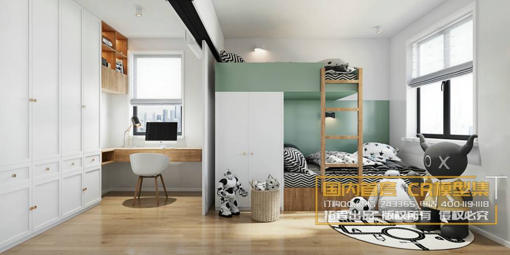 This 3D scene showcases a child bedroom with a charming and playful design. The room features a cozy bed, colorful decor, and stylish furniture. Perfect for those interested in interior design or looking for inspiration for a kids' room project. Download this 3DS MAX/3D scene to explore the details and elements of this delightful child bedroom design.