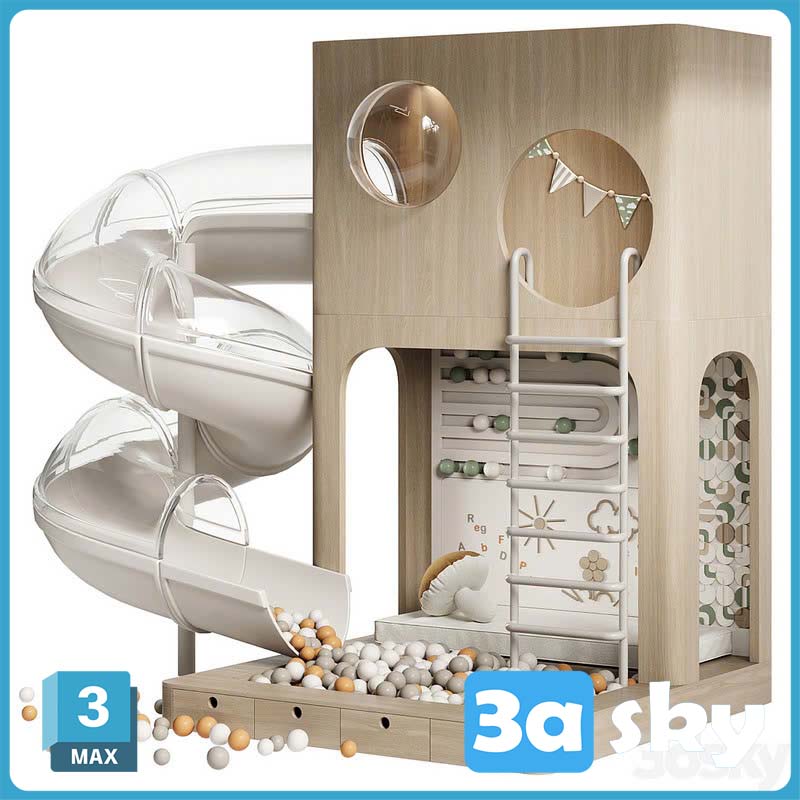 This 3D model showcases an interactive children play area designed in 3DS MAX/KIDS. It features various elements such as slides, swings, and play structures, providing a fun and engaging environment for kids. The model is ideal for educational projects, entertainment venues, and virtual tours. Explore the detailed design and functionality of this interactive play area in 3D format.