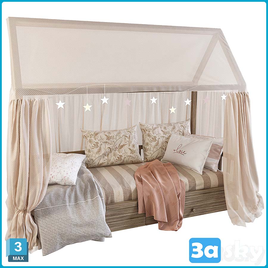This 3D model showcases a delightful Children's Bed with Columns, designed to add a touch of elegance to any child's bedroom. The intricate details and charming design make it a perfect addition to any 3D rendering project. Created using 3DS MAX/KIDS software, this model is ideal for interior design visualization and architectural projects.
