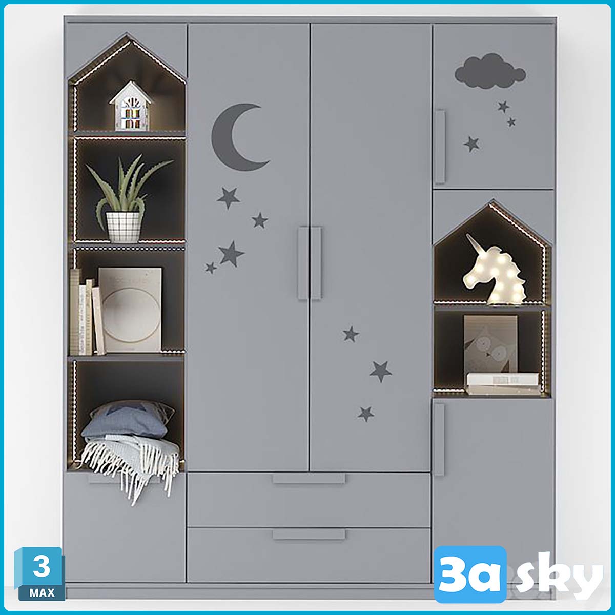 This 3D model showcases custom children's furniture that can be ordered. It is designed to enhance interior design projects and visualizations, providing a realistic representation of furniture options for children's spaces.