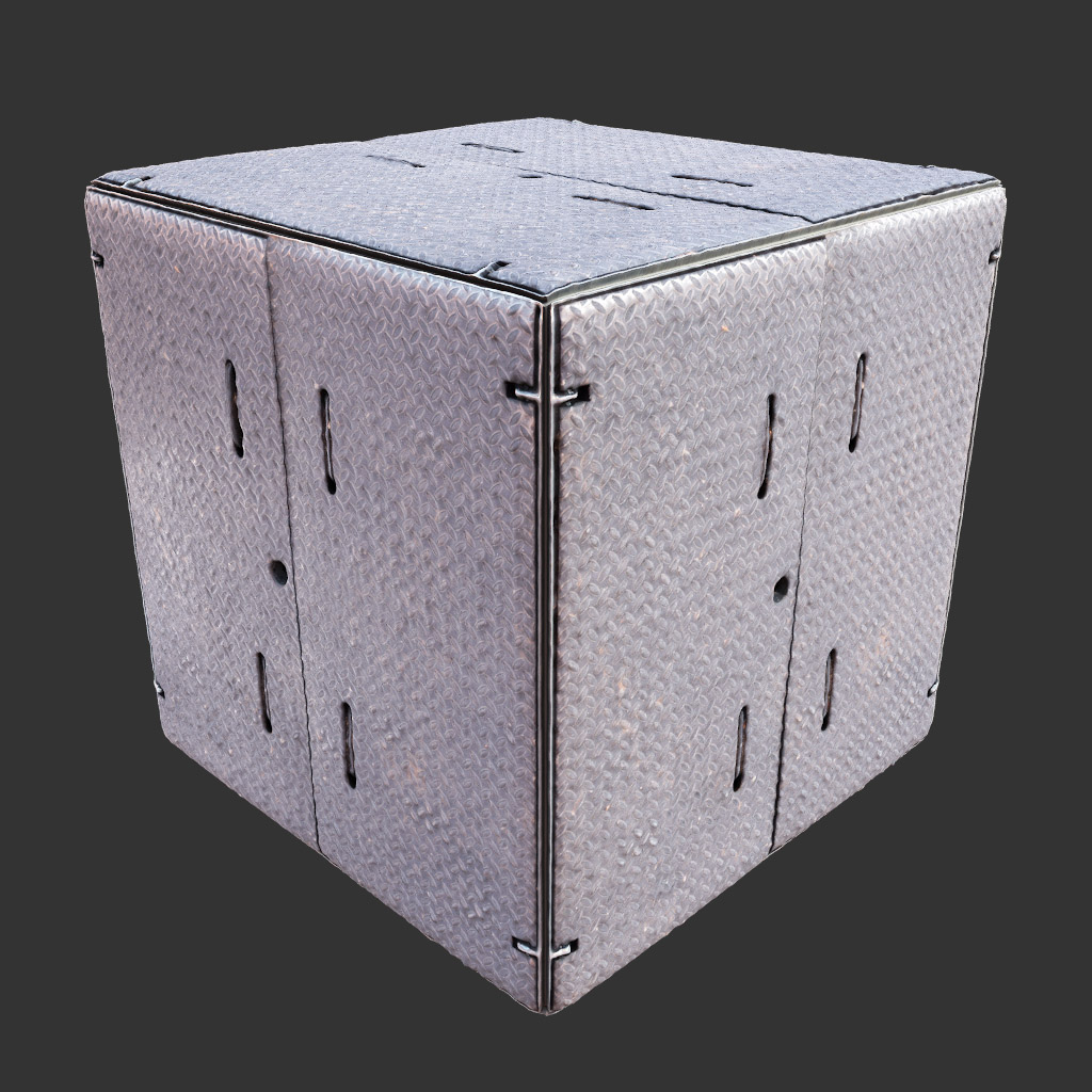 This 3D texture features a city street scene with diamond plate doors. The texture is high-quality and suitable for various design projects. Download this texture for free and enhance your designs with an urban touch.