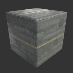 This high-quality 3D texture features a city street road with asphalt surface, four lanes, and a worn appearance. It is ideal for use in architectural visualization projects, urban design renderings, and other creative applications. The texture captures the realistic details of a well-traveled urban road, adding depth and authenticity to your 3D scenes.