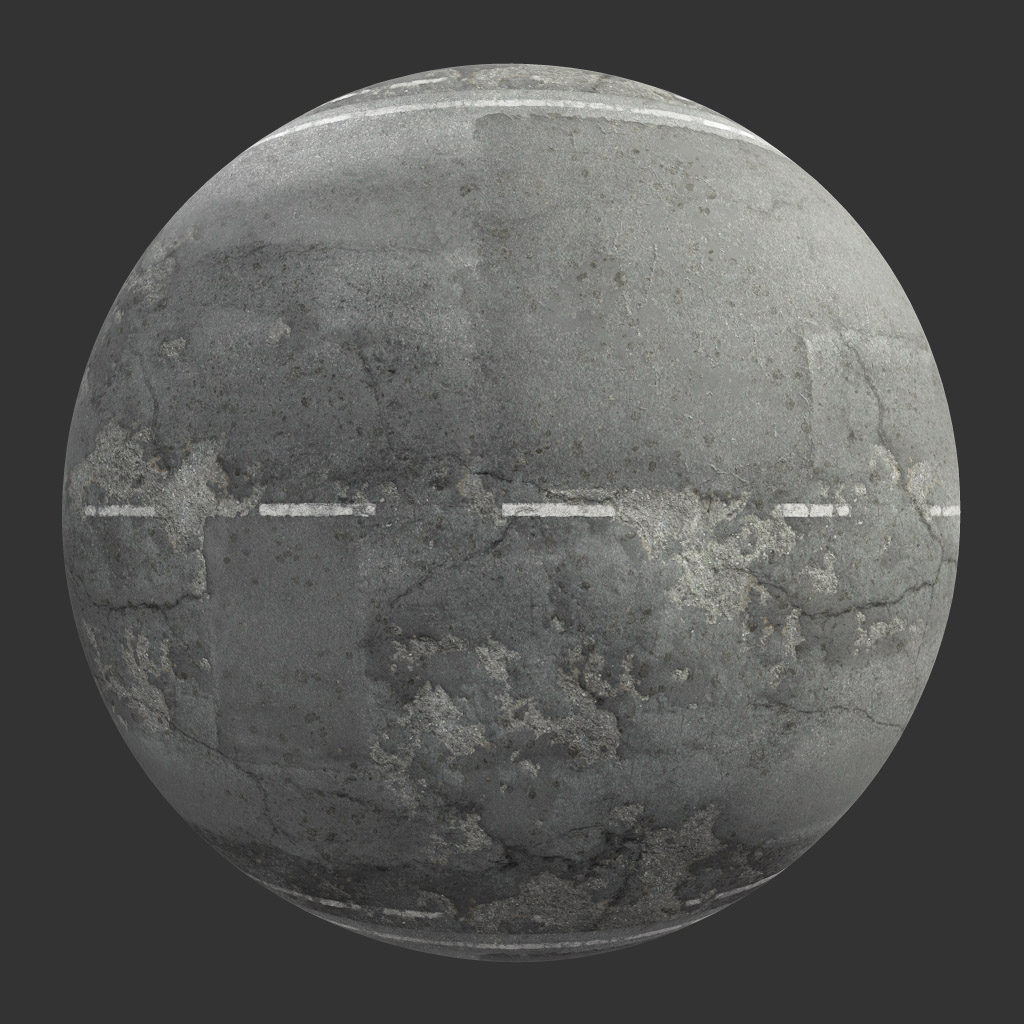 This texture image features a city street road with asphalt, two lanes, and a damaged surface. It is suitable for use in various design projects such as 3D modeling, architectural visualization, and game development.