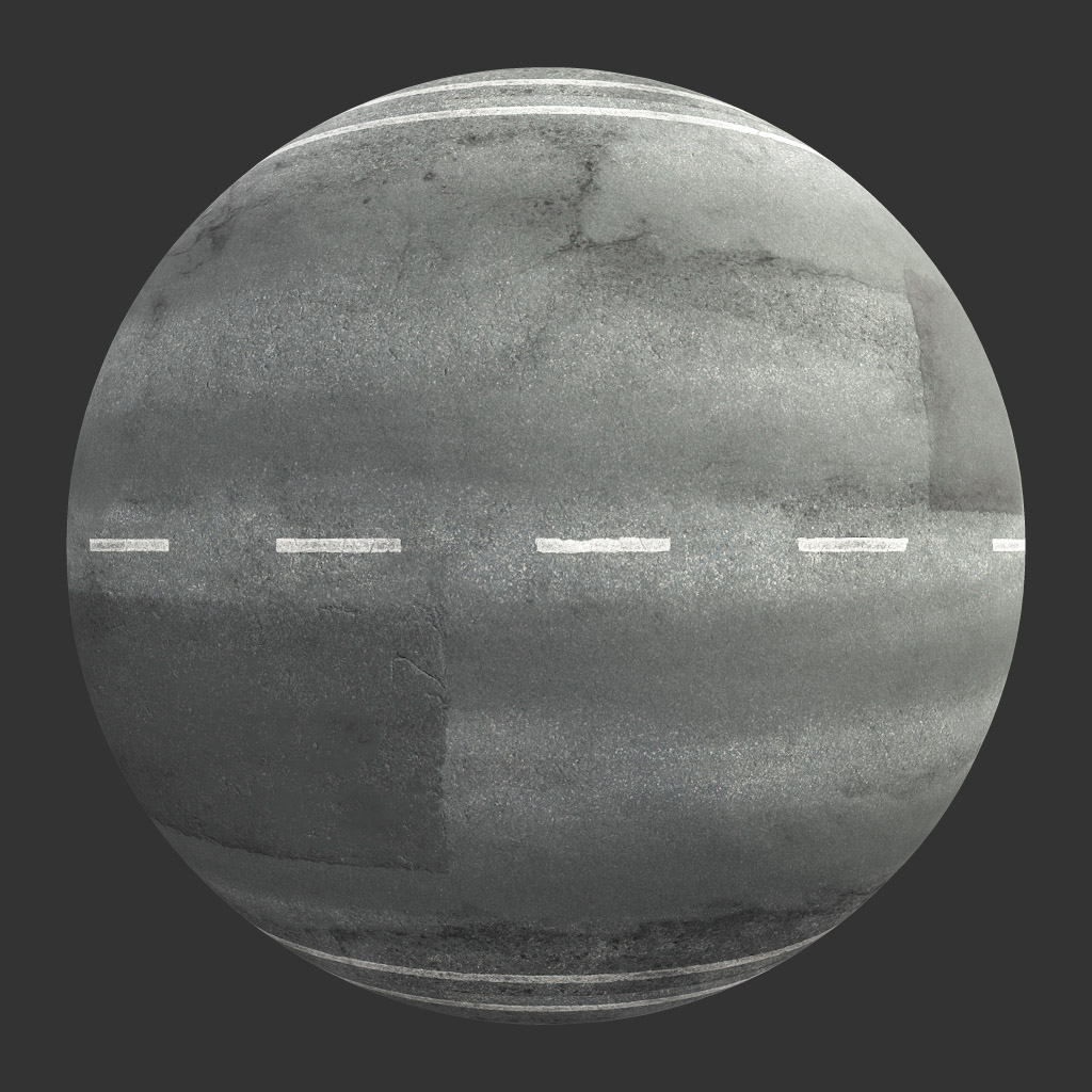This high-quality 3D texture features a city street road with two lanes, displaying a worn asphalt surface. The texture is ideal for creating realistic urban environments in 3D modeling projects. Enhance the authenticity of your scenes with this detailed texture of a well-traveled city road.