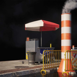 This 3D model showcases a detailed city streets environment created by Kitbash3D. It includes buildings, streets, and a cityscape perfect for urban environment scenes in your projects. The model is designed for use in 3DS MAX and other compatible software for architectural visualization and urban planning purposes.