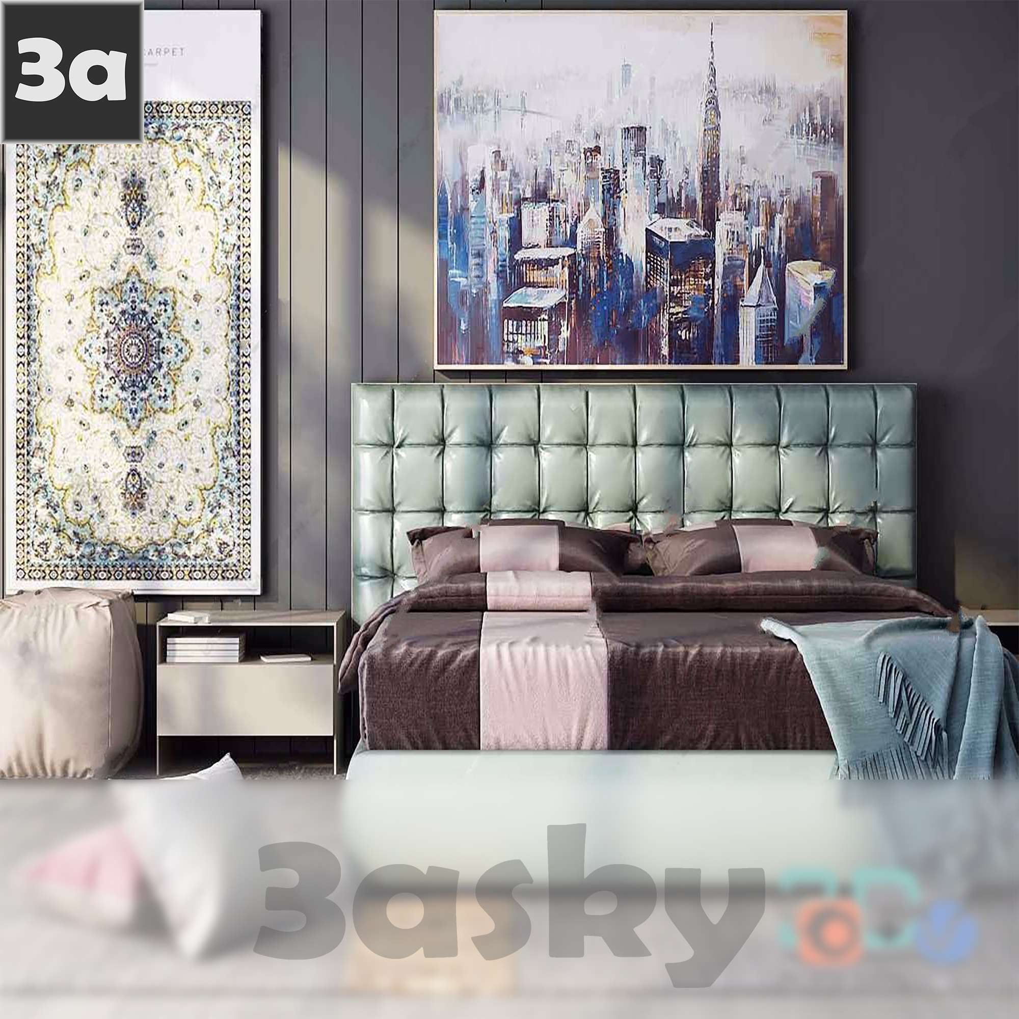 This 3D model features a classic bed design suitable for interior design and architectural visualization projects. The detailed rendering showcases the intricate details of the bed frame and headboard, making it a perfect addition to any bedroom scene. Enhance your design projects with this high-quality furniture model.