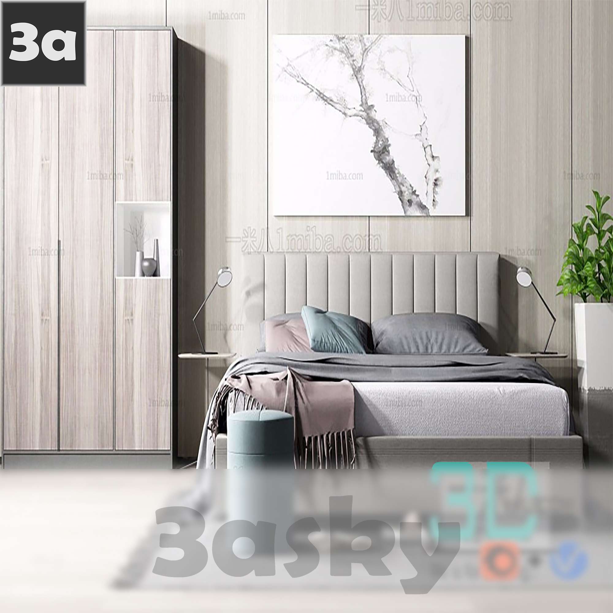 This 3D model features a classic bed design suitable for interior design and architectural visualization projects. The detailed rendering showcases the intricate details of the bed frame and headboard, making it a perfect addition to any bedroom scene. Enhance your design projects with this high-quality furniture model.