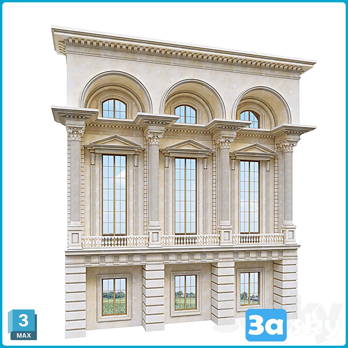 This image features a preview of a classic facade element, showcasing intricate architectural details. The design is created using 3DS MAX software, highlighting the beauty and complexity of architectural elements. Explore this stunning preview to get inspiration for your architectural projects.