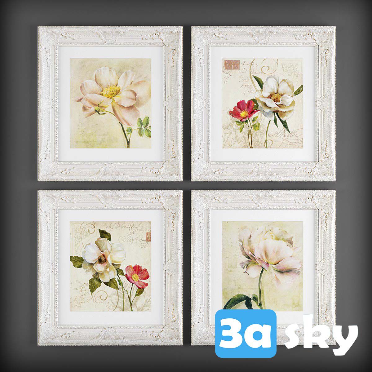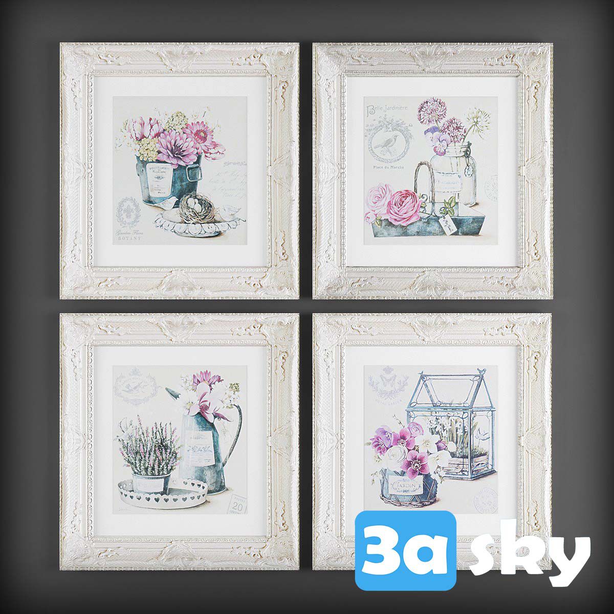 This 3D model features a collection of paintings in classic style, suitable for interior decoration projects. The intricate details and elegant design make it a perfect addition to any space aiming for a classic aesthetic.