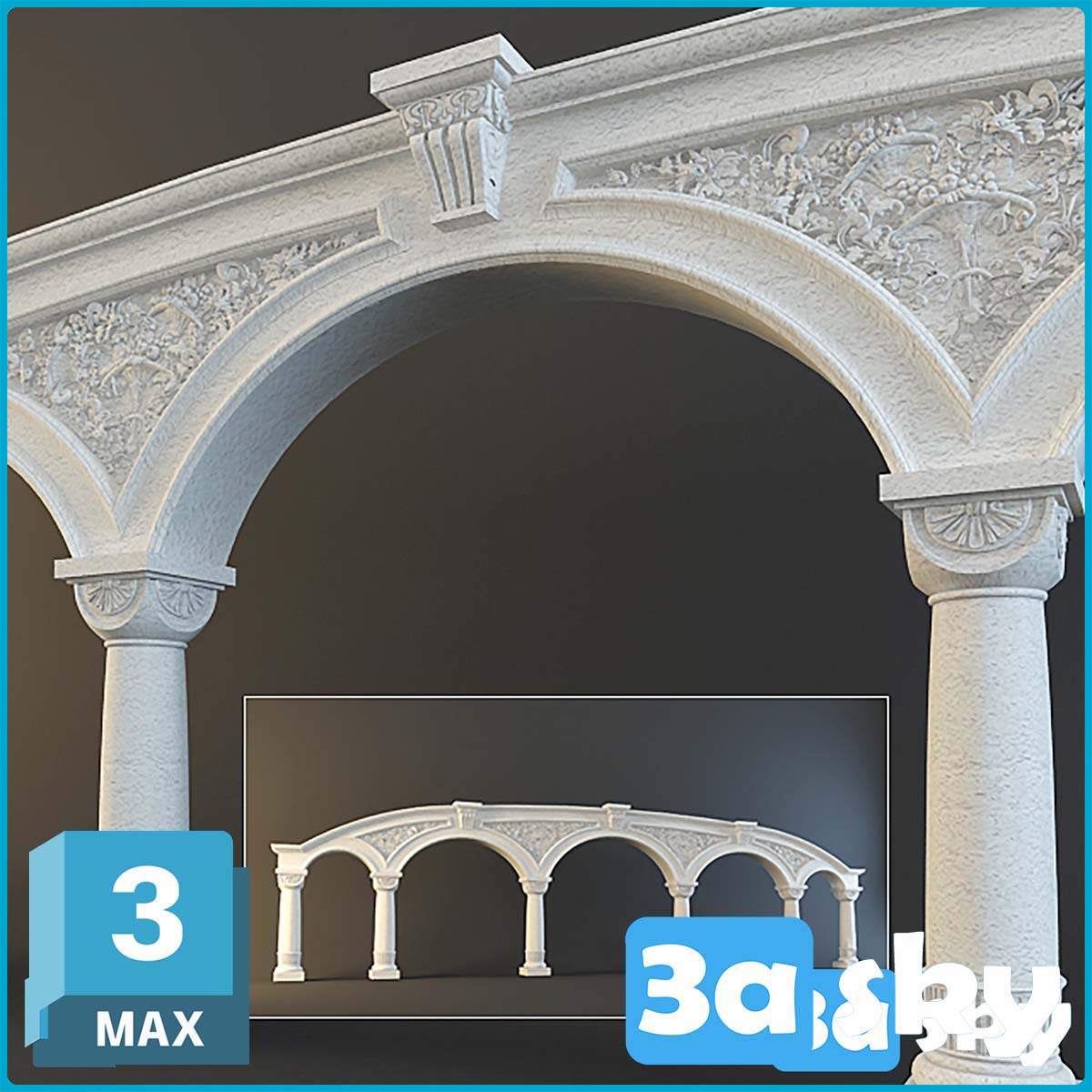 This 3D model showcases a detailed colonnade design in architecture. The file is compatible with 3DS MAX software and is ideal for architectural visualization projects. Download this high-quality preview for your design inspiration and implementation.