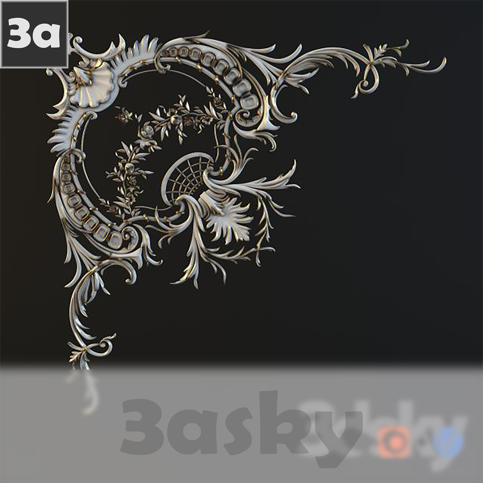 This 3D model features a corner piece with elegant gilding details, perfect for adding a touch of luxury to your interior design projects. The intricate design and high-quality rendering make this model a great addition to any 3D design library.
