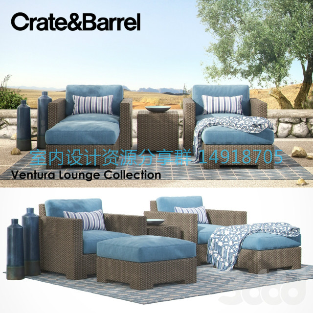 This 3D model features a Crate Barrel furniture design in 3DS MAX format. Perfect for interior designers and architects looking to enhance their projects with high-quality furniture models. Download now and elevate your design presentations.