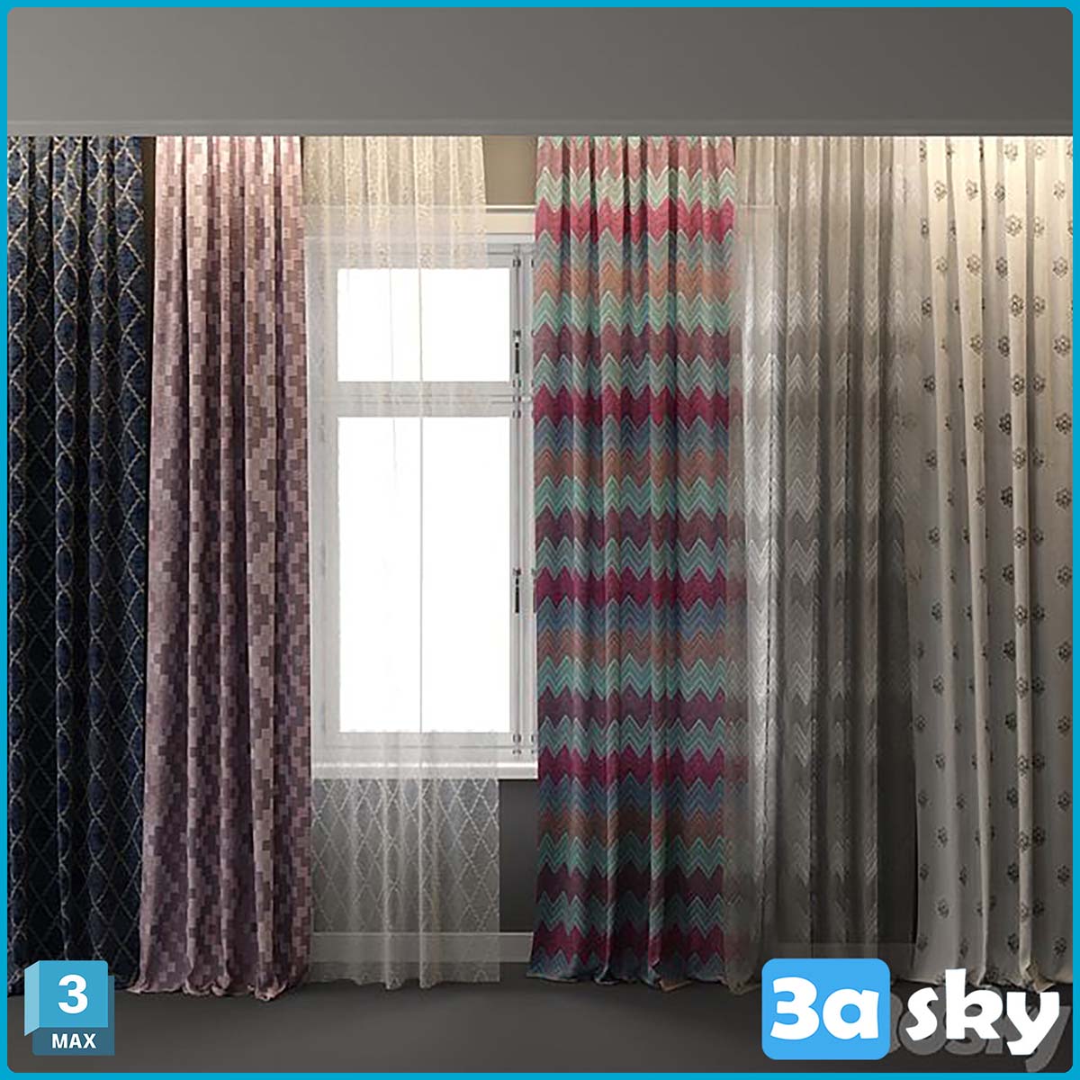 This 3D model showcases modern curtains designed for interior decoration. The curtains feature a sleek and contemporary design, perfect for enhancing the aesthetics of any living space. Add a touch of elegance and style to your interior with these beautifully crafted curtains.