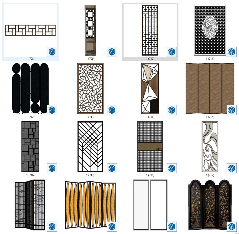 This Sketchup file features a decorative partition design, ideal for interior decoration projects. The 3D model provides intricate details and can be customized to fit various design concepts. Enhance your interior design workflow with this versatile decoration partition model.