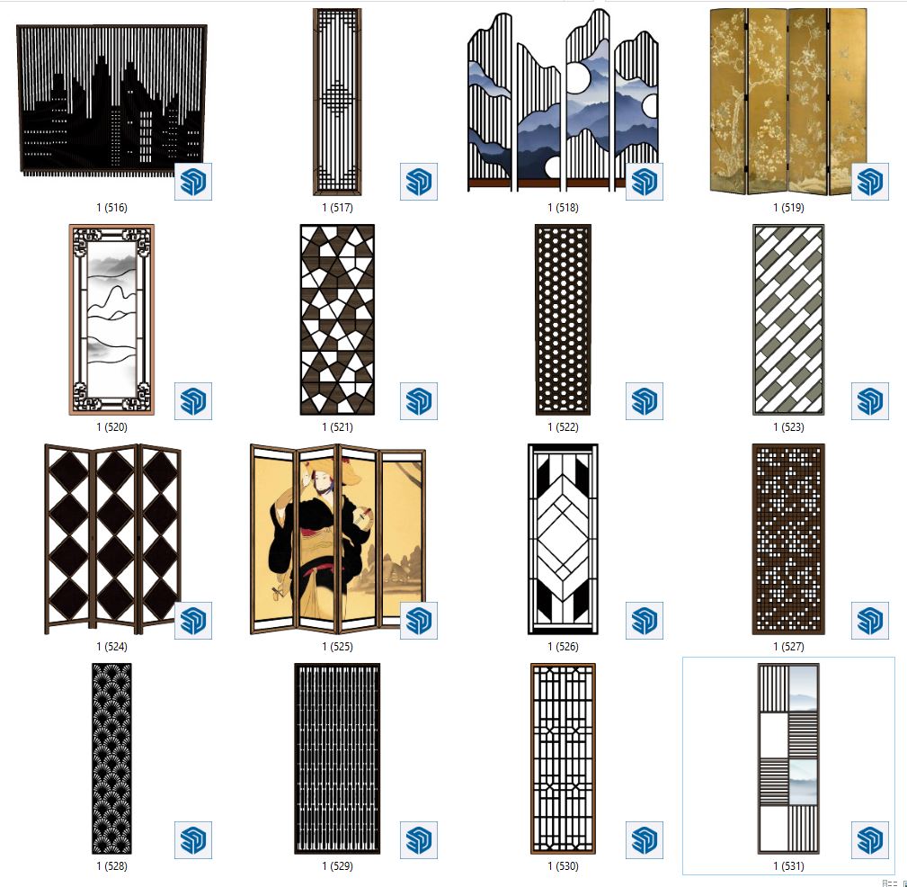 This Sketchup file features a decorative partition design, suitable for interior decoration projects. The 3D model provides intricate details and can be used in various design scenarios.