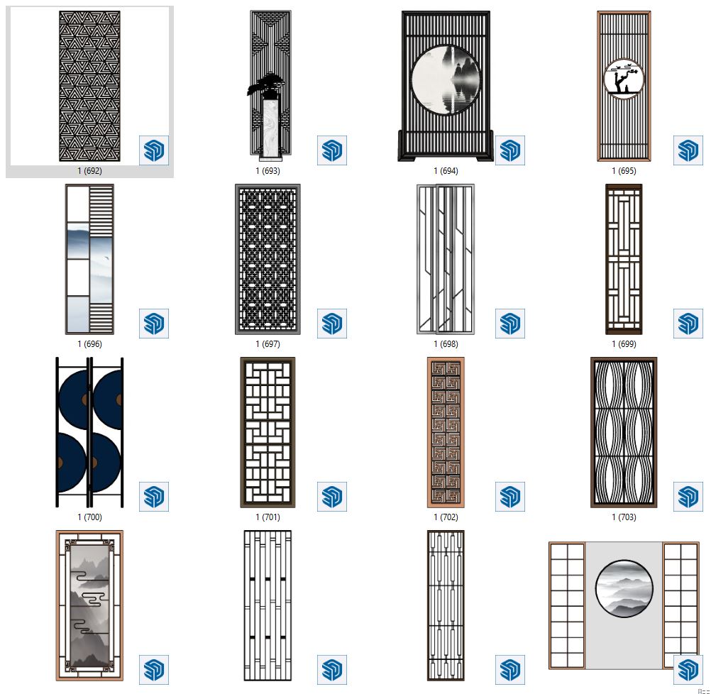 This Sketchup file features a decorative partition design, suitable for interior decoration projects. The 3D model provides intricate details and can be used in various design scenarios.
