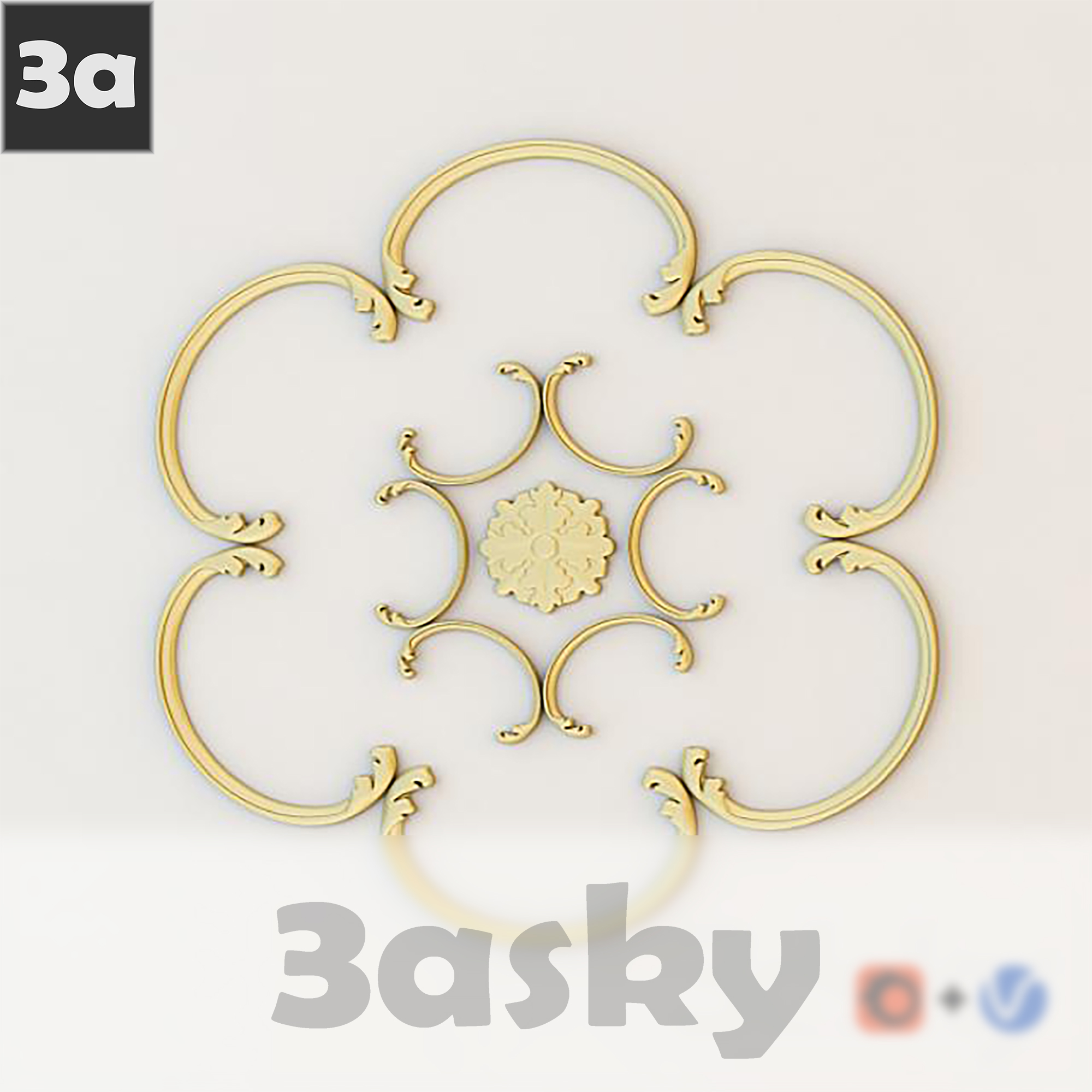 This 3D model showcases a decorative element labeled as DE 19. It features intricate details and can be used as an ornamental design element in various projects. The file is available in 3DS MAX/OTHER MODEL format.