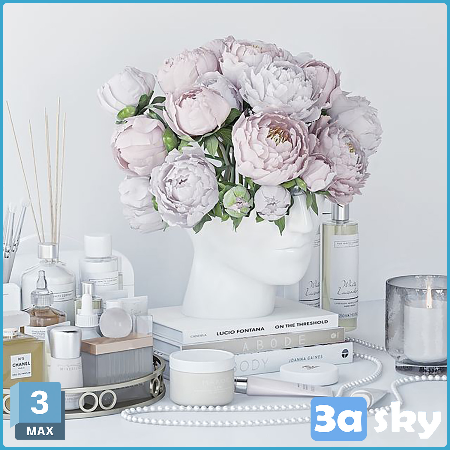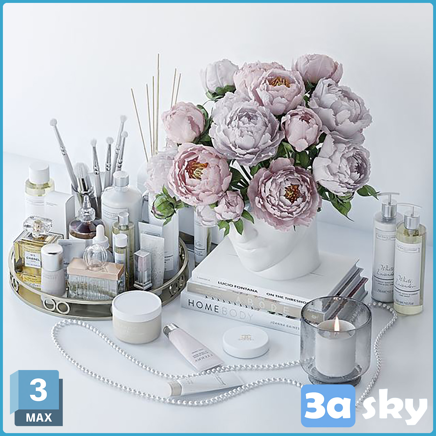 This 3D model showcases a decorative set featuring intricate floral designs. Ideal for adding a touch of elegance to interior spaces. The set includes various elements that can be used to enhance the visual appeal of any project.