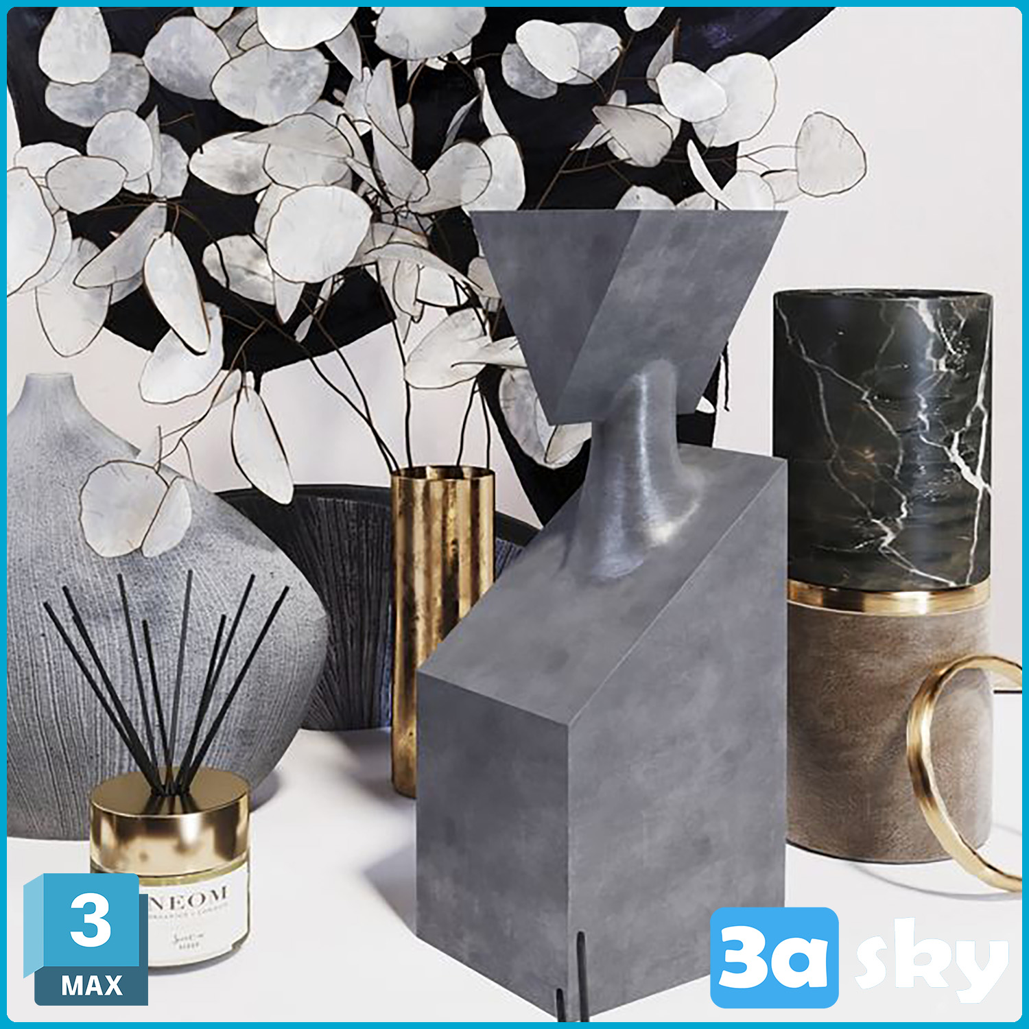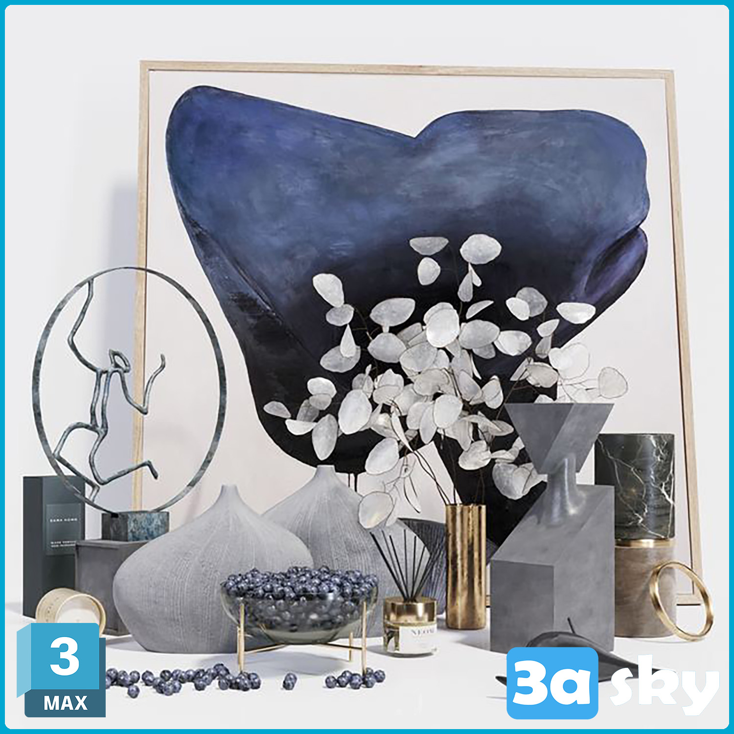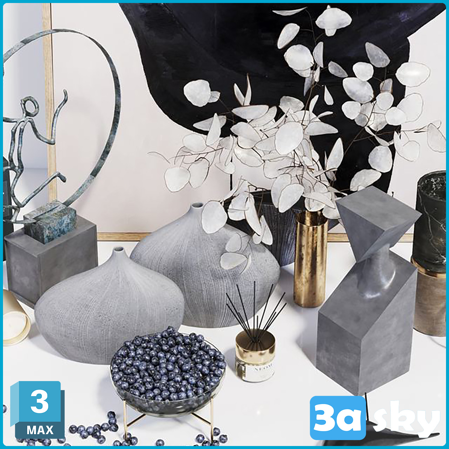 This 3D model showcases a decorative set designed for interior decoration purposes. The intricate details and elegant design make it a perfect addition to any interior design project. Created using 3DS MAX software, this model is ideal for architects, interior designers, and 3D enthusiasts looking to enhance their visualizations. Download this high-quality 3D decoration model and elevate your design projects to the next level.