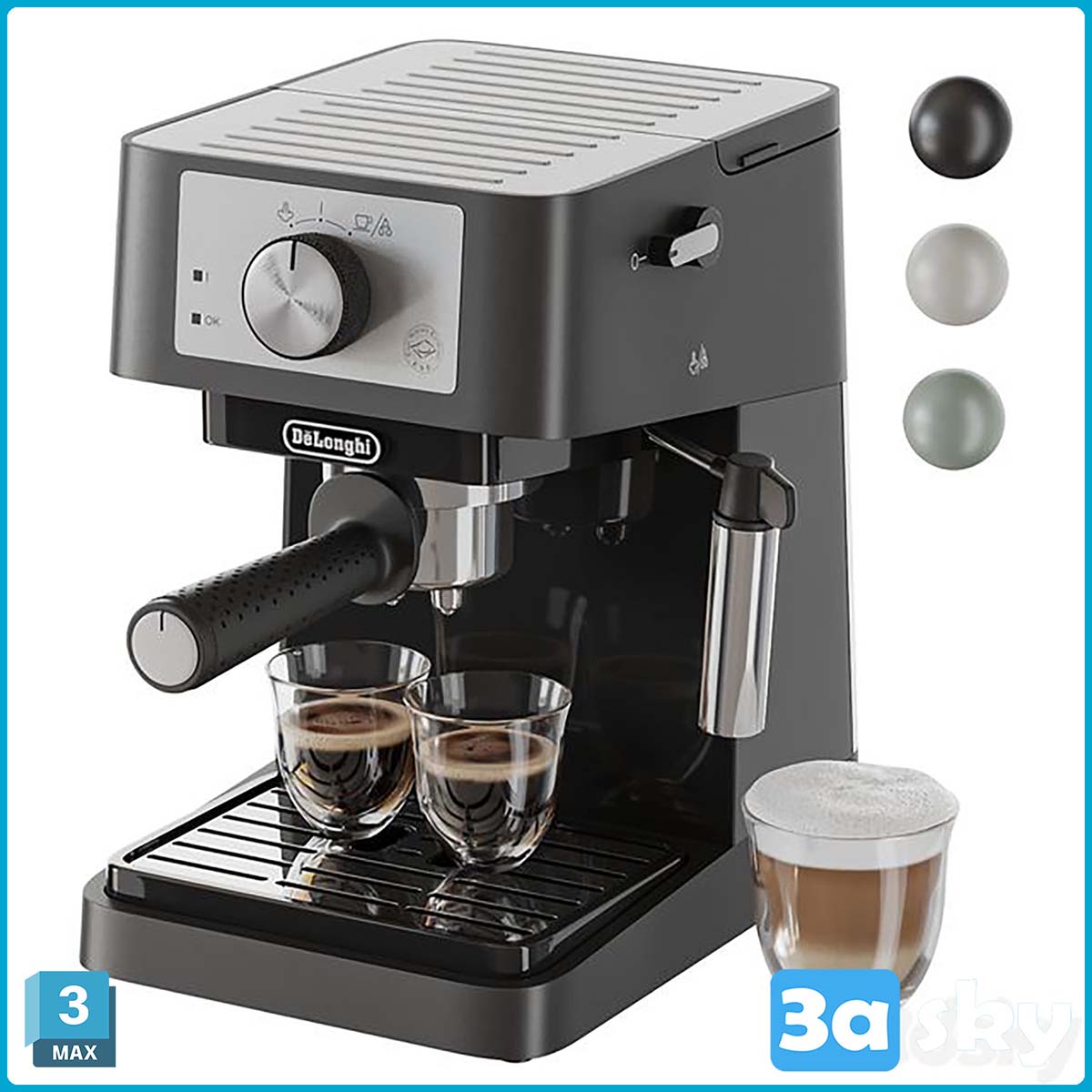 This 3D model features the Delonghi EC260 Manual Espresso Machine in a kitchen environment. The model highlights the intricate design and functionality of the Delonghi EC260 espresso machine, perfect for showcasing in kitchen scenes or product presentations.