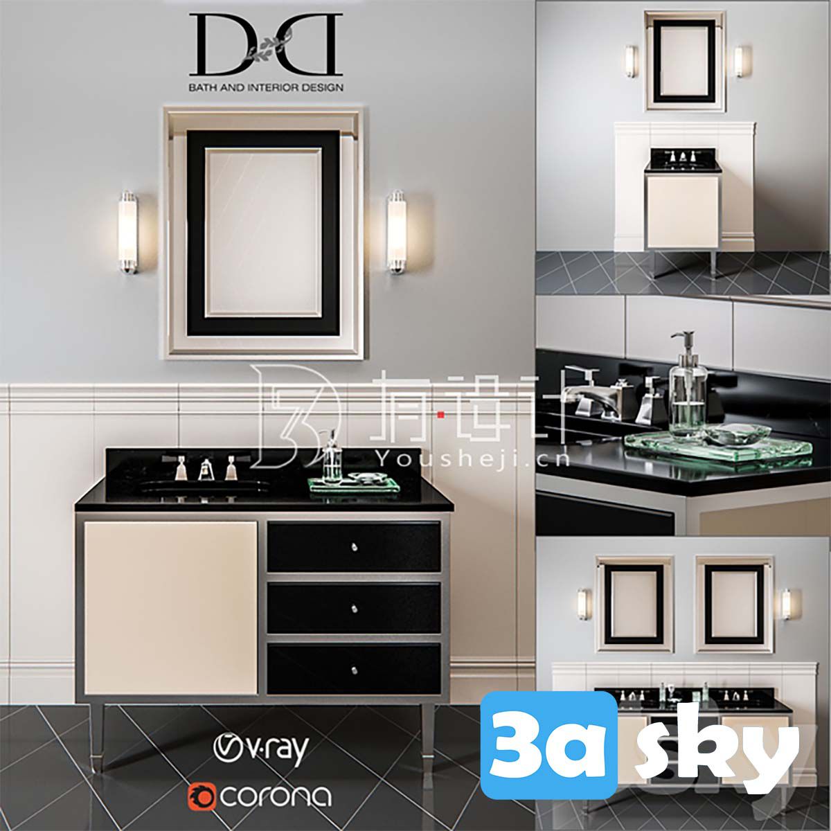 This 3D model features the Devon & Devon Jazz Collection Vanity Unit, perfect for bathroom and WC interior design projects. The elegant design and attention to detail make this vanity unit a standout piece in any modern bathroom setting. Enhance your design projects with this high-quality 3D model.