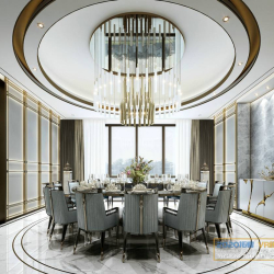 This 3D scene showcases a beautifully designed dining room with modern and elegant furniture. Created using 3DS MAX software, this visualization is perfect for interior design projects and inspiration. The scene features a stylish dining table, chairs, lighting fixtures, and decor elements that create a welcoming and sophisticated ambiance.